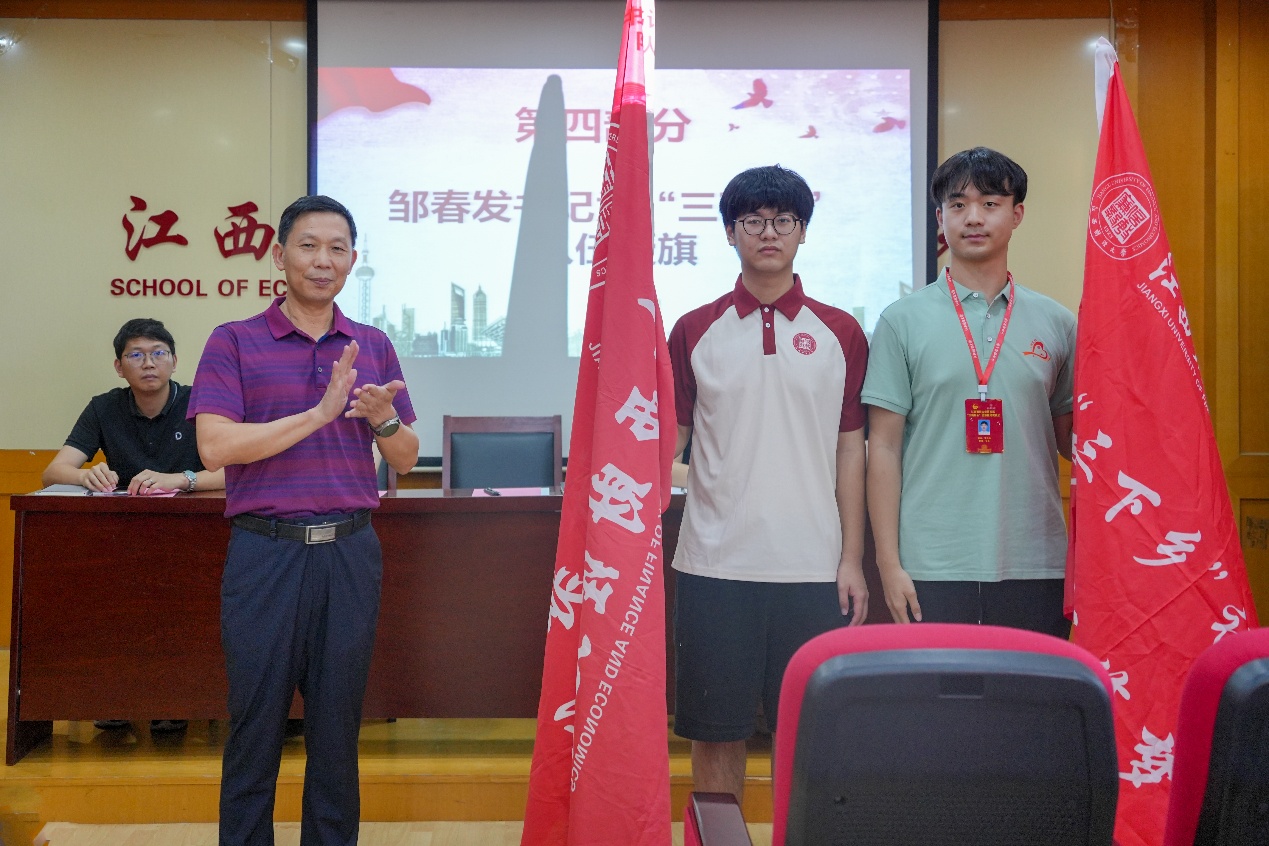 会上,党委书记邹春发为社会实践队授旗并鼓励同学们发挥专业优势,将专业知识与实践紧密结合,勇于创新,为服务社会贡献力量。