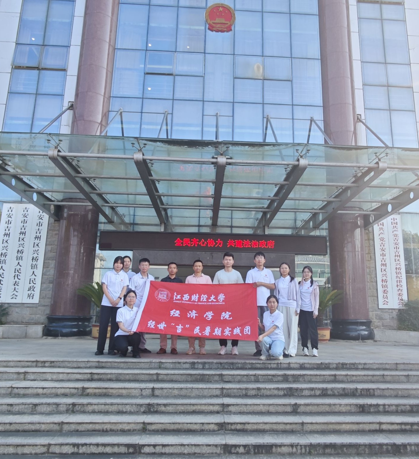 结语:双向奔赴谱新篇 此次调研与服务深度印证,“三生”协同如齿轮驱动吉州乡村振兴:产业托举生活,民生赋能家园,生态反哺产业。交流中,队员们既关注地方规划的蓝莓新产线、生态岗位计划,也分享调研见闻与服务感悟,为发展提供一手信息和青年视角。一幅更高层次“三生协同”的蓝图在吉州乡野展开——产业蓬勃,家园温馨,自然永续。“经世‘吉’民”的使命,在服务乡亲、共建家园的双向奔赴中生动践行,落地生花