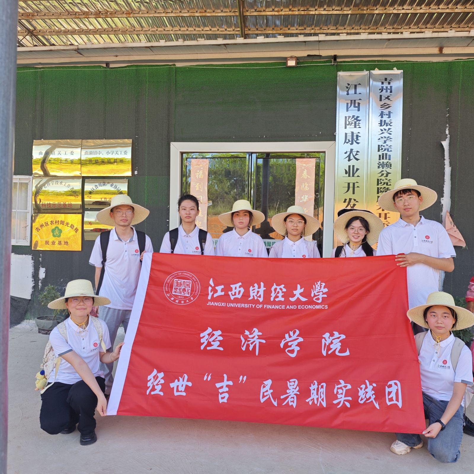 “经世‘吉’民”实践队在陈胜东老师带领下,于7月赴吉安市吉州区曲濑镇、兴桥镇开展专题调研。此行聚焦当地“生产、生活、生态”三生融合模式,并躬身实践服务乡亲。 调研产业:助农增收注活力 实践队扎根乡村一线,深度参与并助力产业发展。在长明村,调研黑木耳、芋头基地带动增收超60万元、新增就业120人的经验,并向村民推广先进技术信息和市场渠道。泉塘村正值蓝莓采摘季,队员们加入农户队伍协助采摘,并走进中草药基地清除杂草,以实际行动缓解农忙压力。驻村书记介绍“家门口”务工模式时,队员们结合专业背景,就优化经营模式、提升资源效率与村干村民深入探讨。卢家洲村探访古建“卢家三宝”时,队员积极拍摄宣传素材,利用新媒体扩大古村文旅知名度,助力其带动百余村民增收。队员们用脚步丈量、双手劳动,亲证“一村一品”成效,更以青春汗水为产业振兴添砖加瓦。