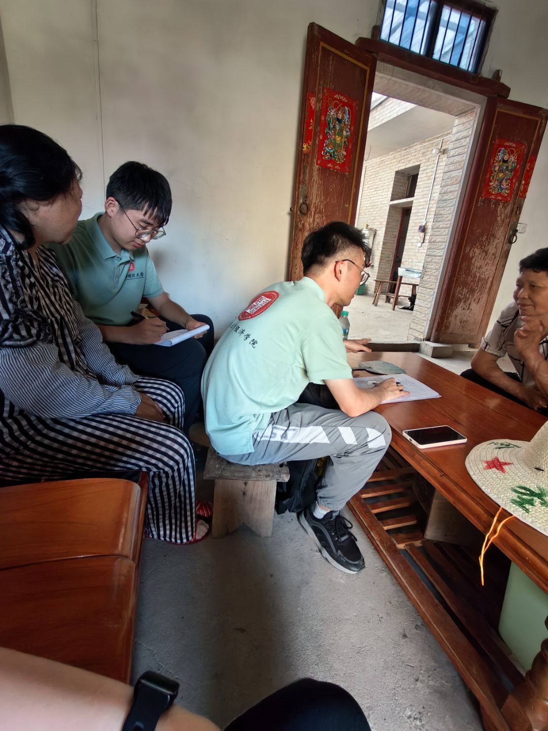 服务民生:温暖“一老一小” 实践队特别关注“一老一小”群体需求。在福田村沉浸式感受“五福”文化后,队员们旋即转战泉塘村,将关怀化作行动:在幸福活动室和老年食堂,队员们帮助打扫卫生、整理物品,用心陪伴温暖童心(组织小课堂、手工艺活动);为老人备餐送餐、聊天倾听,悉心记录生活变化与需求,反馈给村干部优化服务。乡村振兴的落脚点,是百姓家中厚实的幸福温度,而这温暖里融入了队员们的服务关怀。