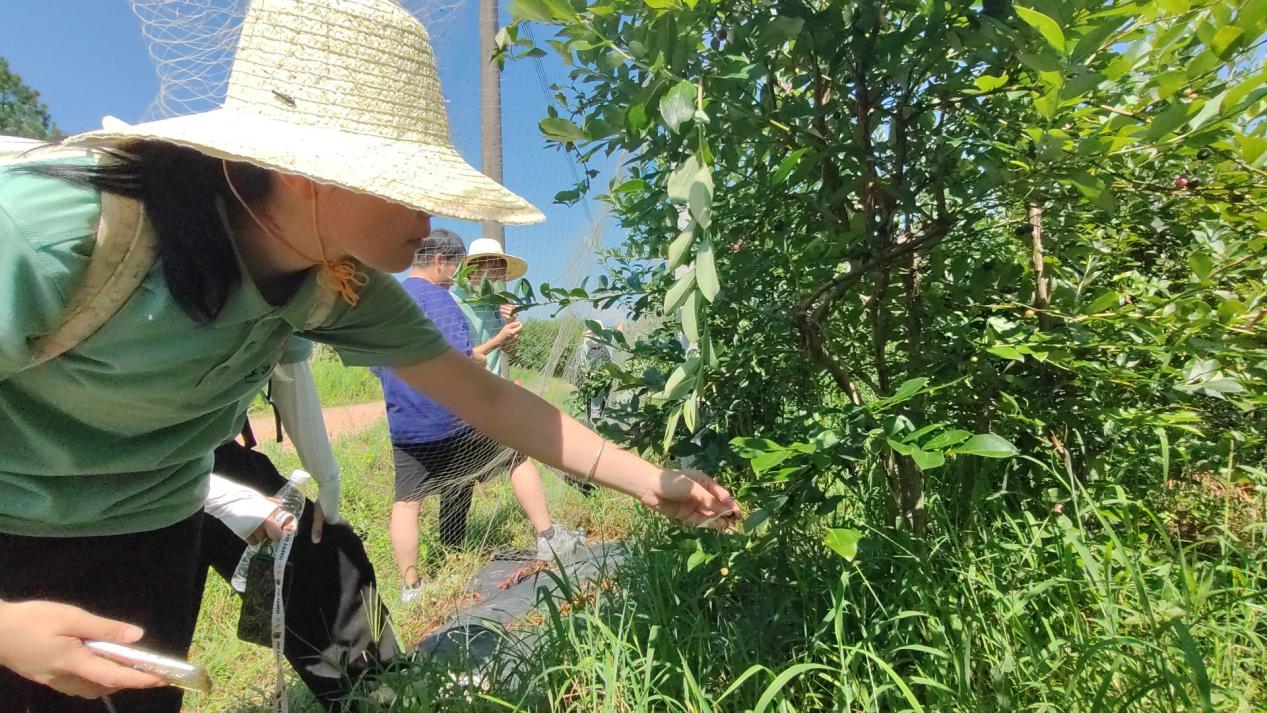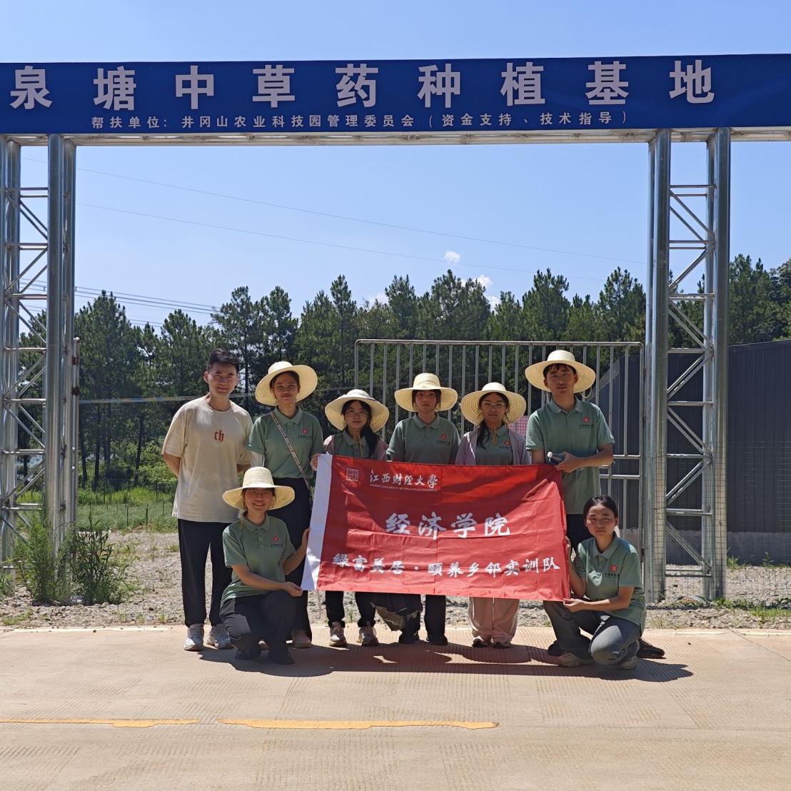 产业耕沃土:汗水浇灌希望 在兴桥镇蓝莓种植基地,成片的蓝莓树整齐排列,饱满的果实挂满枝头。虽然烈日当头,队员们依然热情高涨,跟随农户学习采摘技巧。"采摘时要轻捏果蒂,避免损伤果粉。"基地技术员一边示范一边讲解。队员们弯着腰在齐肩高的蓝莓丛中穿梭,汗水浸透了衣衫,但看到篮子里渐渐堆满的"蓝宝石",脸上都洋溢着收获的喜悦。 随后,实训队来到泉塘村中草药种植基地。队员们蹲在田间,仔细观察这些中草药的生长情况。"这种药材需要两年才能采收,但经济效益却是传统作物的数倍。"技术员杨主任向大家介绍着。队员们认真记录,并就种植技术、销售渠道等问题与主任深入交流。 钓源古村之行中,队员们既沉醉于深厚的人文底蕴与绿水青山的美景,更以经济学视角评估其运营模式的优化空间。
