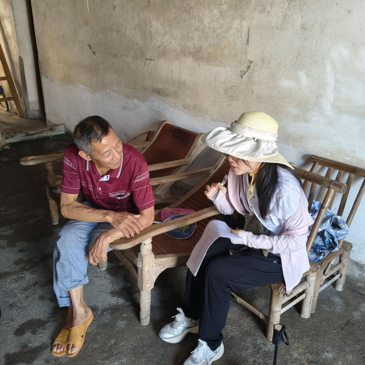 带着座谈会上梳理的关键问题,实训队分组深入村庄开展入户调研。队员们手持调查问卷,与农户面对面交流,倾听最真实的心声。在产业特色村,无论是田间休息的农民身旁,还是在树荫乘凉的老人身边,都能看到队员们边记录边提问的身影。他们聚焦村民对本地主导产业发展的看法、参与度及面临的困难,详细询问村级养老服务的具体需求与政策落地情况,累计完成有效问卷320份,厚厚的访谈记录本写满了村民的所思所盼,为吉州区治理效能与服务发展分析提供了丰富的一手资料。