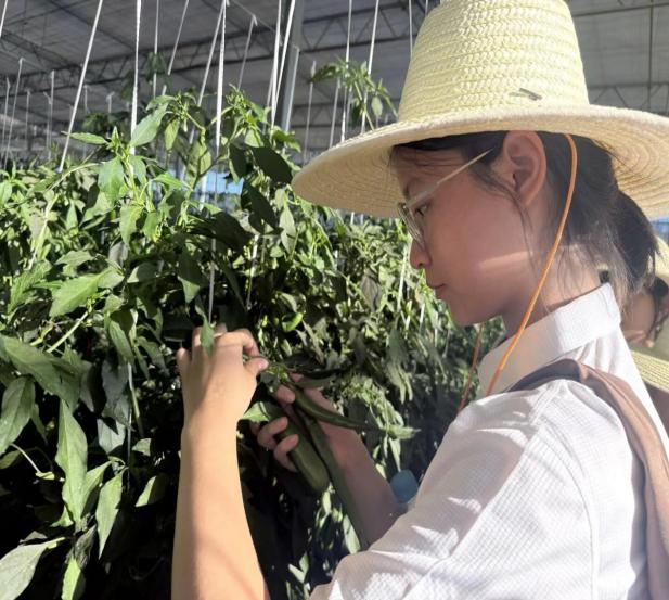 图3实践队与曲濑镇政府座谈 图4实践队与兴桥镇政府座谈 聚焦产业兴旺,绘就发展蓝图 为深入调研特色产业发展,实践队兵分两路展开实地考察,其中一支队伍赴永阳镇多个村庄,重点走访了大丰田园、蜜柚与葡萄合作社以及蛋鸡养殖基地和现代农业示范园等,现场了解种植技术与产业模式。与此同时,另一队深入曲濑、兴桥两镇,考察了黑木耳、蓝莓、中草药等种植基地,体验养殖户的生产方式。在考察过程中,队员们不仅深入学习当地经验,也结合实际观察提出建议,为产业发展提供助力。实地走访期间,江西圣大农业科技有限公司负责人强调:“品牌化运营与数字化管控,正推动吉安农产品突破地域限制,融入全国大市场”。以“产业旺”促进“乡村兴”,让更多优质农产品走出大山、走进市场。