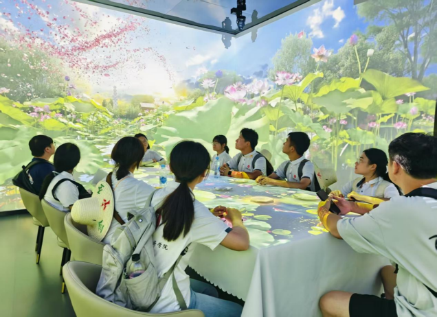 图5实践队参观现代农业示范园数字展区 图5实训队参观大丰田园农业基地
