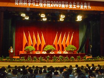 2009届毕业典礼在科艺苑隆重举行。09届全体毕业生和学院领导及教师代表齐聚一堂,怀着喜悦和激动的心情参加了此次典礼。主席台就座的有院党总支书记仪建红、院长刘亚青、院党总支副书记廖海洪、副院长侯华、材料科学系系主任李迎春出席了此次典礼。本次典礼由院党总支副书记廖海洪主持。
