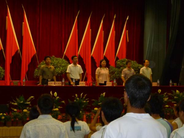主持人廖书记宣读毕业生离校的有关规定,并希望同学们毕业后不要忘记母校,能够一如既往地关心、支持学校、学院的建设和发展。并祝福同学们工作顺利,事业有成,前程似锦,一路顺风。