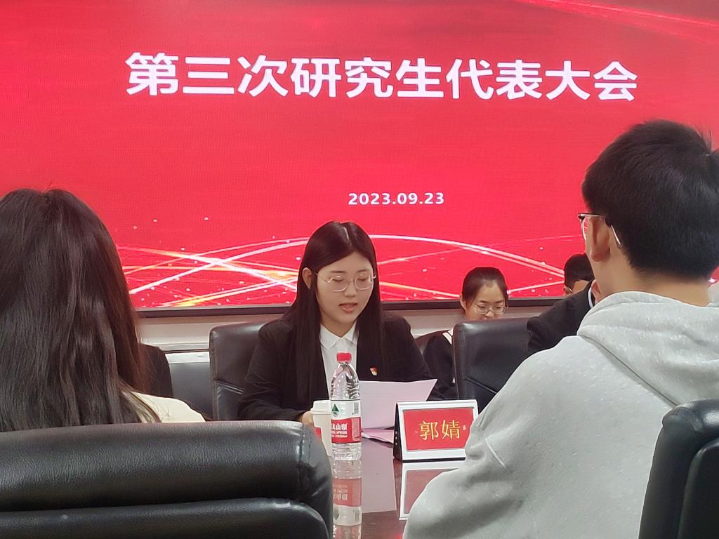 2023923日上午9时,免费av影片 在笃学楼二层20A大会议室召开第三次研究生代表大会。免费av影片 团委书记郝诗韵,免费av影片 研究生会执行主席郭婧,免费av影片 学生科韩伟,免费av影片 学生科褚嫱以及全体院级研究生代表出席会议。本次会议由第二届主席团成员王梓霖主持。