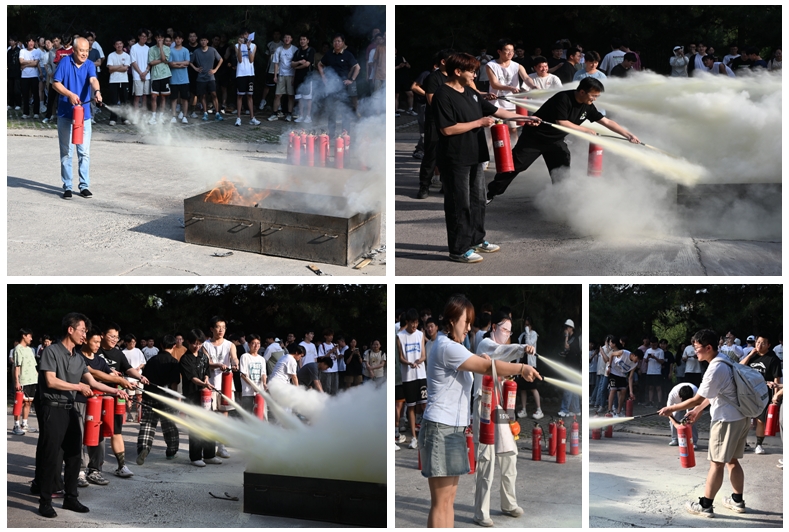 在实操环节,李鑫教官开展了灭火器扑救起火实操演示,详细介绍了灭火器使用要领和注意事项,并现场示范了消火栓正确使用方法。在教官的指导下,学生和教师们逐渐掌握了灭火技巧,成功扑灭了模拟火源,巩固了消防安全知识及技能,提升了处理应急事件的能力。