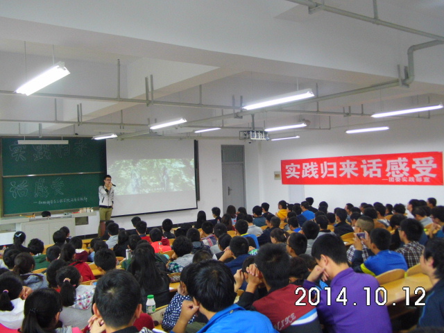 会上,毛亚龙、王珏等六位同学为大会做出了精彩的报告。报告介绍了他们实践的过程和归来的感受,同学们受益匪浅。大学生暑期社会实践促进了学生素质教育,加强和改进了青年学生思想,是引导我们健康成长和成才的重要举措,是学生接触社会、了解社会、服务社会,培养创新精神、实践能力和动手操作能力的重要途径。大学生社会暑期实践活动引导我们走出校园的象牙塔,走出课堂,走向社会,走上了学习实践相结合的道路,到社会的大课堂上去经受风雨,见识世面,增长才干。报告为大一大二的同学指出了实践的方向。