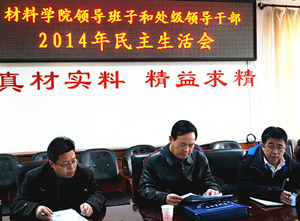 2014年度处级领导班子和处级干部民主生活会是在以 “严格党内生活,严守党的纪律,深化作风建设”为主题,结合全省正在开展的“学习讨论落实活动”大背景下召开的。学院党委高度重视此次民主生活会,会前做了大量的准备工作。首先精心制订实施方案,并做严密部署;其次做好理论学习;第三向学院师生征求意见和建议;第四班子成员间进行了谈心。根据以上环节,班子成员根据群众提的意见、自己查找的问题、班子成员互相帮助提出的建议等为依据认真撰写领导班子和个人对照检查材料,为开好民主生活会打下了坚实的基础。整个会议在严肃、认真、热烈、和谐的气氛中进行。