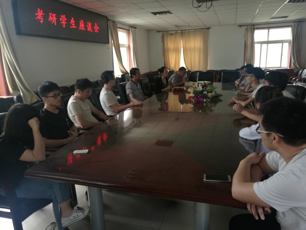 于学院办公室会议室召开了考研学生座谈会,出席本次座谈会的有院党委书记薛亚奎、学生科科长郭云霞老师、院团委书记毋登辉老师及14级各班考研学生代表。