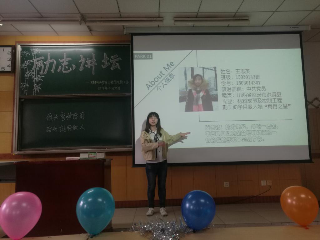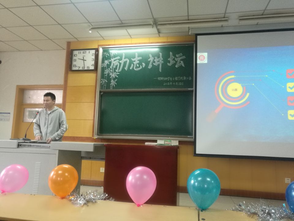 2018年4月22日上午9点,在09301H院勤工委成功举办了第二期励志讲坛,此次讲坛邀请到了环境与安全工程学院曹智勇,理学院刘小旗,材料学院王志英作为主讲嘉宾。机电工程学院于晶老师,院学生科殷炳叶老师,院勤工委主任焦杰彪参加了此次讲坛。