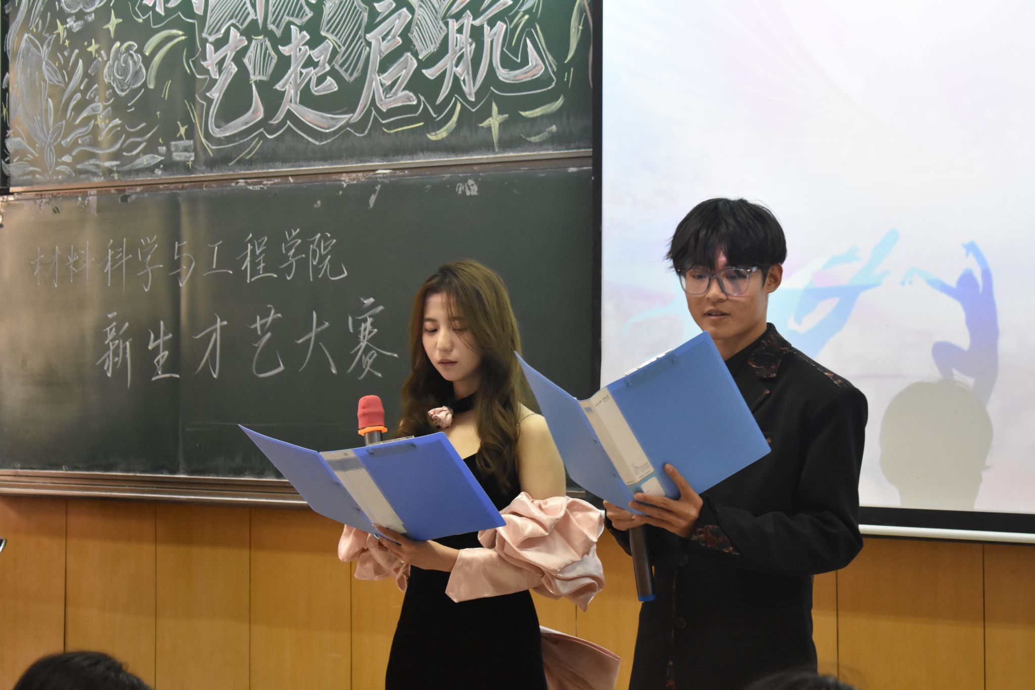 “材华绽放 艺起启航”新生才艺大赛在11208H教室圆满举办。学院团委副书记迟骋、学生会主席张恒、各部门部长以及众多学生共同观看了此次比赛,见证新生们的精彩绽放。