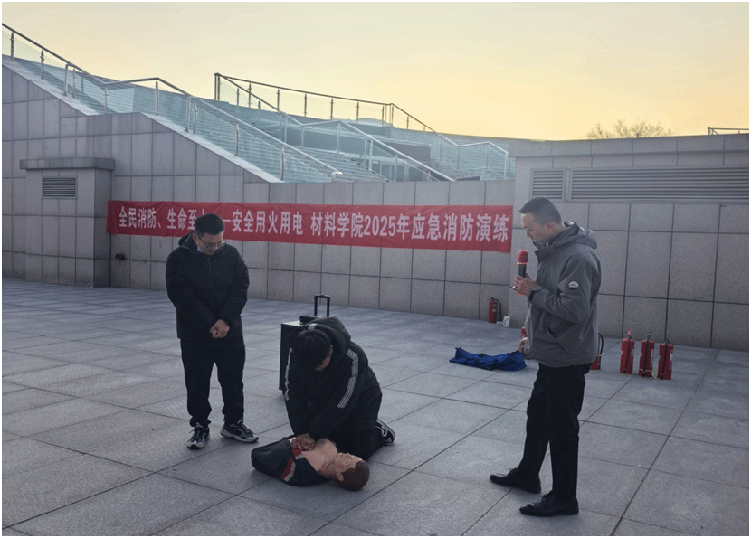 全体新生疏散至安全区域后,活动进入到实操环节。张教官通过模型详细拆解了心肺复苏“判断意识、呼救、胸外按压、人工呼吸”等关键步骤的要领,逐一纠正实操学生动作,确保大家精准掌握急救技能。