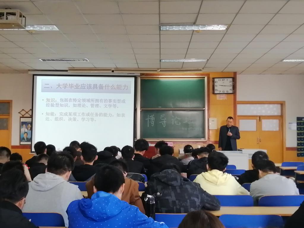 论坛在大家无比期待中开始了。张老师提出人才素质不只是上学,从个人经历深入浅出的讲述了大学生学习的人生历程。和同学们讨论了大学生应该具有什么能力,深入浅出的和同学们分享了在专业知识、知能、角色定位、品质以及动机这五个方面的见解。