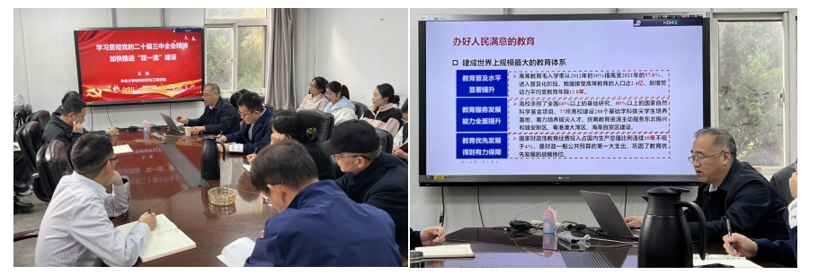 院长王强以《学习贯彻党的二十届三中全会精神,加快推进“双一流”建设》为题,为精密成形中心教工党支部和研究生材料加工第二党支部的党员们上了一堂生动的党课。此次党课由精密成形中心教工党支部书记孟模同志主持,支部全体党员齐聚精密成形中心会议室,共同参与此次党课活动。