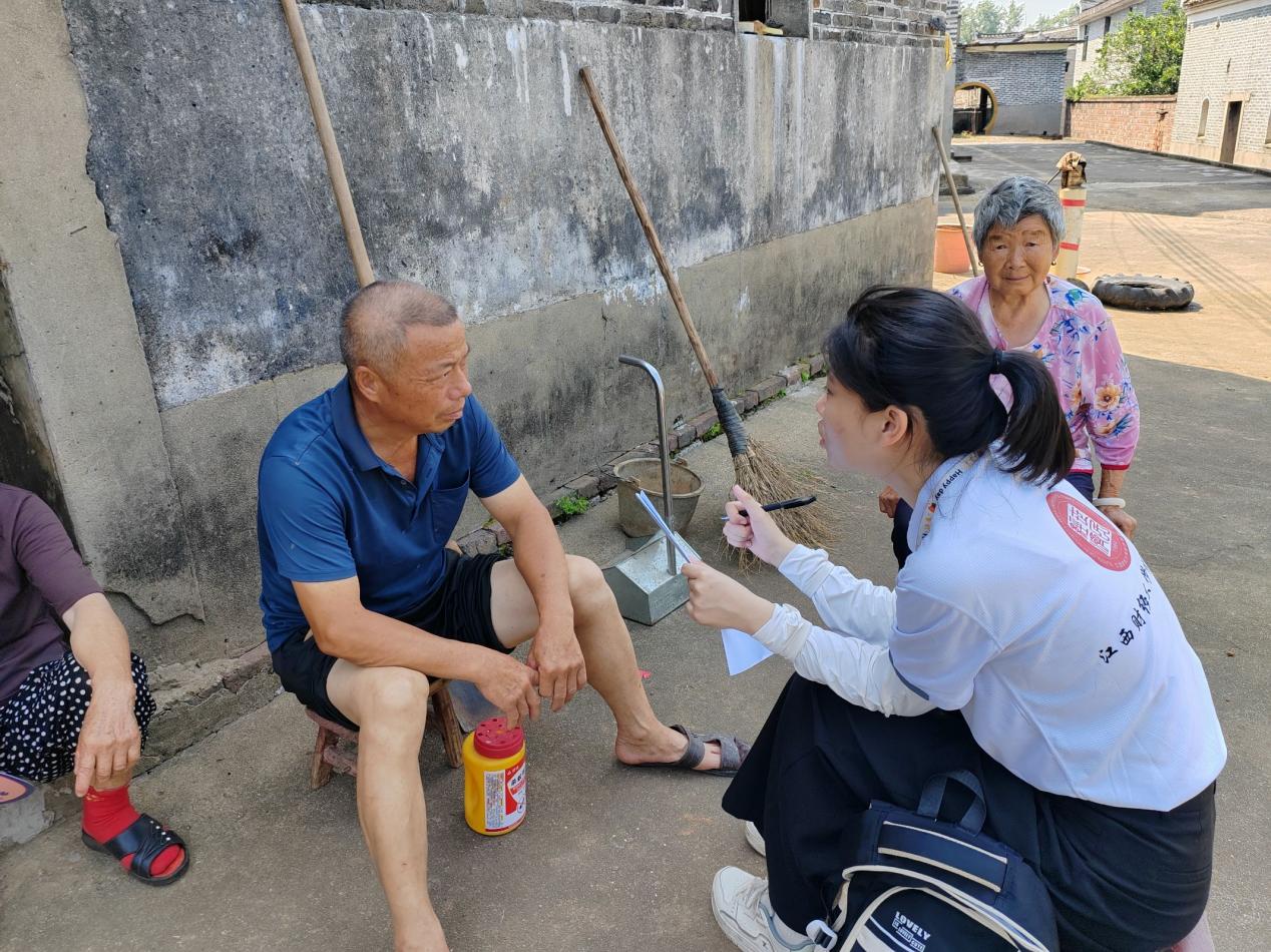 带着座谈会上梳理的关键问题,实训队分组深入村庄开展入户调研。队员们手持调查问卷,与农户面对面交流,倾听最真实的心声。在产业特色村,无论是田间休息的农民身旁,还是在树荫乘凉的老人身边,都能看到队员们边记录边提问的身影。他们聚焦村民对本地主导产业发展的看法、参与度及面临的困难,详细询问村级养老服务的具体需求与政策落地情况,累计完成有效问卷320份,厚厚的访谈记录本写满了村民的所思所盼,为吉州区治理效能与服务发展分析提供了丰富的一手资料。