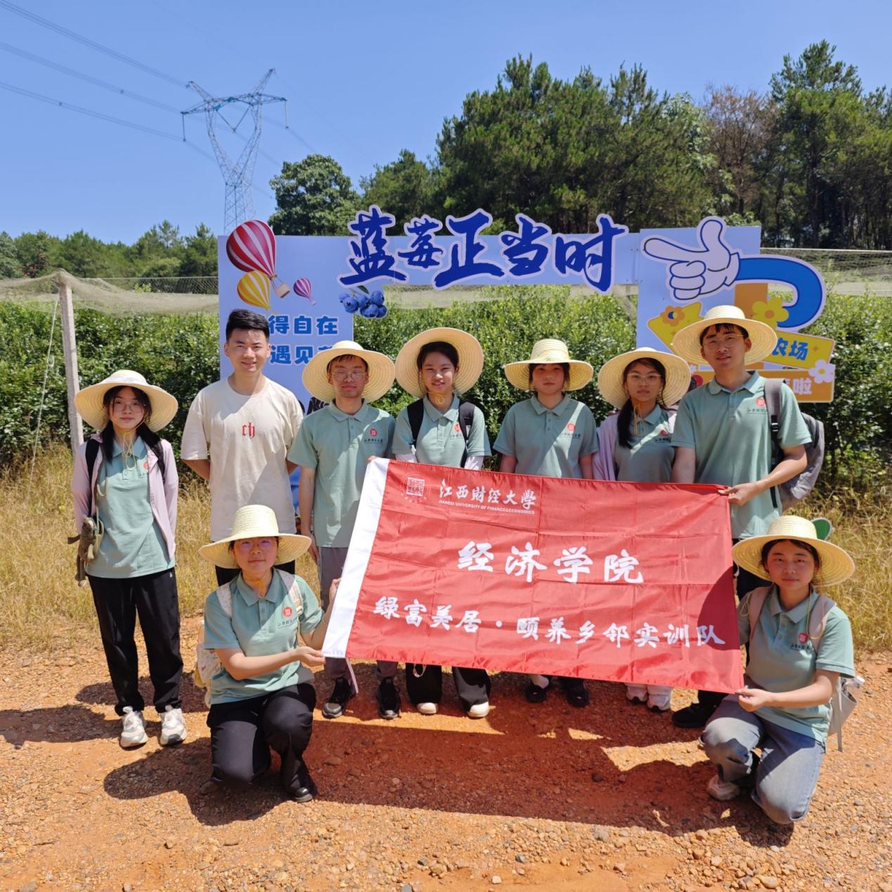 产业耕沃土:汗水浇灌希望 在兴桥镇蓝莓种植基地,成片的蓝莓树整齐排列,饱满的果实挂满枝头。虽然烈日当头,队员们依然热情高涨,跟随农户学习采摘技巧。"采摘时要轻捏果蒂,避免损伤果粉。"基地技术员一边示范一边讲解。队员们弯着腰在齐肩高的蓝莓丛中穿梭,汗水浸透了衣衫,但看到篮子里渐渐堆满的"蓝宝石",脸上都洋溢着收获的喜悦。 随后,实训队来到泉塘村中草药种植基地。队员们蹲在田间,仔细观察这些中草药的生长情况。"这种药材需要两年才能采收,但经济效益却是传统作物的数倍。"技术员杨主任向大家介绍着。队员们认真记录,并就种植技术、销售渠道等问题与主任深入交流。 钓源古村之行中,队员们既沉醉于深厚的人文底蕴与绿水青山的美景,更以经济学视角评估其运营模式的优化空间。